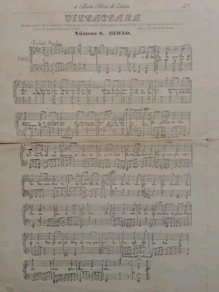 Por su parte la música que acompaña al texto pertenece a una de las principales figuras de la historia universitaria y villareña de los años cincuenta, el doctor Agustín Anido Artiles (1903-1965), miembro ilustre de una antigua familia cuyos aportes a la cultura local son visibles todavía.